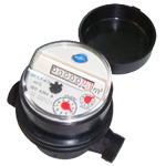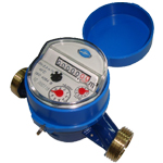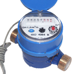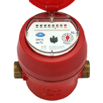 Medidor o contador de agua, pequeño, ligero y húmedo, marcado con el registro de lectura directa que funciona sumergido en el agua. El movimiento mecánico de transmisión equivale a una máxima fiabilidad. Filtro de entrada; el medidor es adecuado para la operación en agua dulce y limpia.